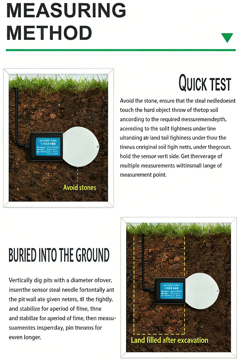 1. Presisi tinggi: mengukur secara akurat perubahan terkecil pada Suhu dan Kelembaban tanah, dengan rentang pengukuran yang luas.