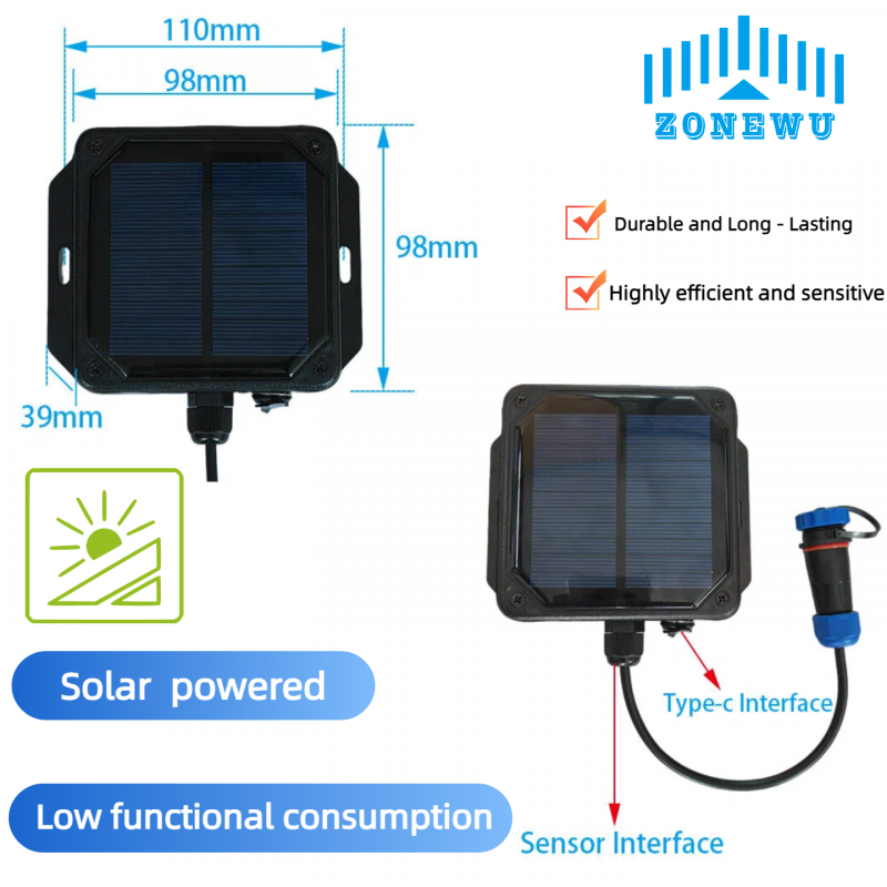 Sensor EC/PH/suhu dan kelembaban tanah tenaga surya LoRa ZONEWU adalah perangkat pemantauan lingkungan yang mengintegrasikan catu daya tenaga surya dan teknologi komunikasi jarak jauh. Fungsi intinya adalah untuk mengumpulkan data EC/PH/suhu dan kelembaban tanah secara real-time.