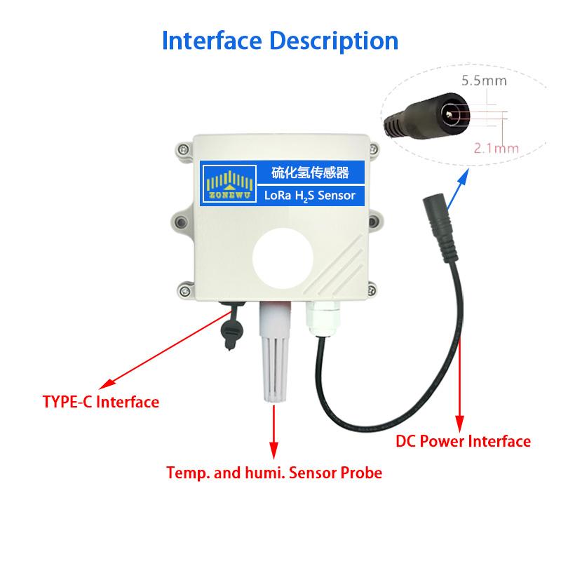 ZONEWU Wireless LoRaWAN Thi Produk ini dilengkapi dengan sensor H2S dan sensor suhu dan kelembapan.